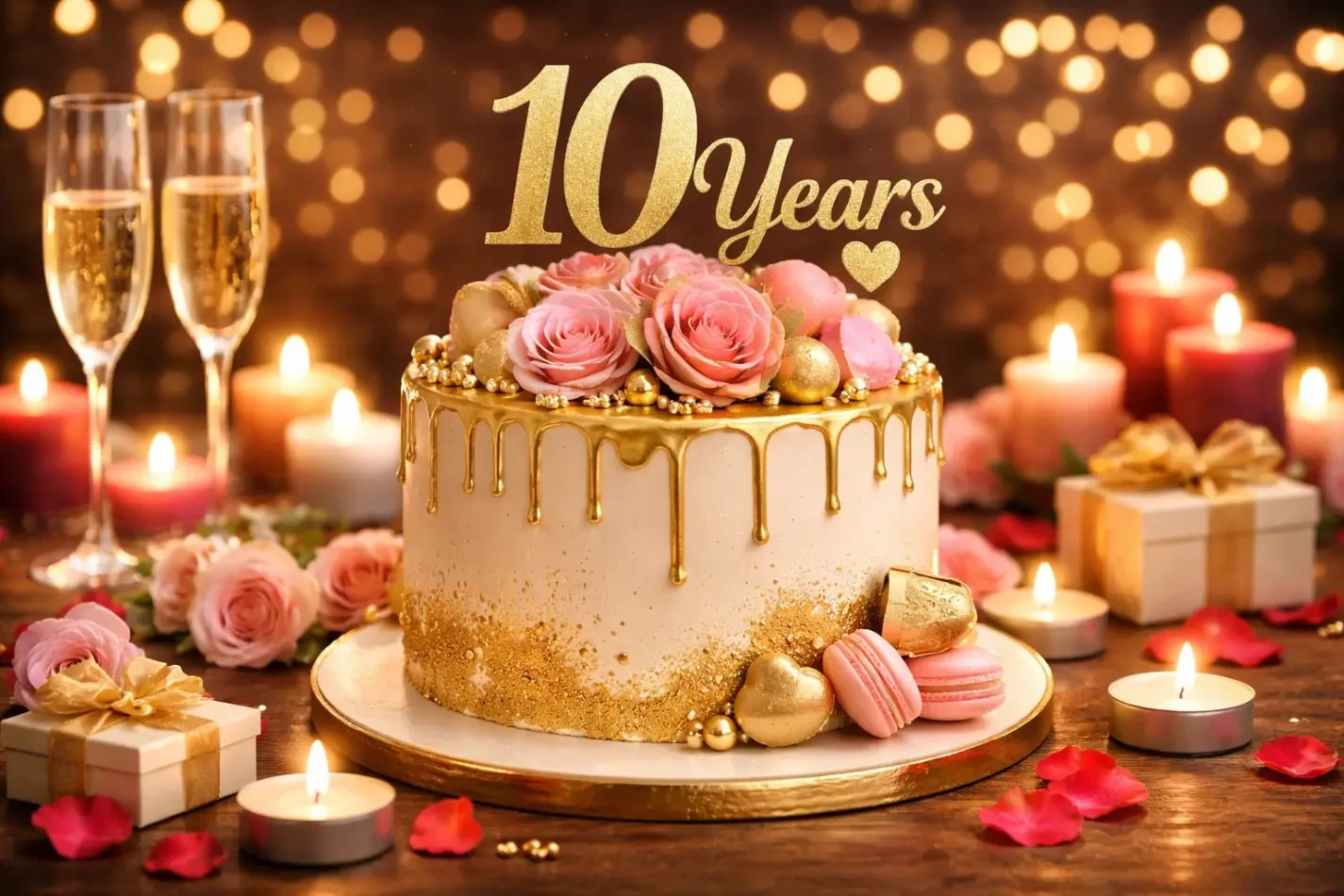 Completing ten years together is a huge achievement. It deserves a cake that reflects maturity and deep connection.