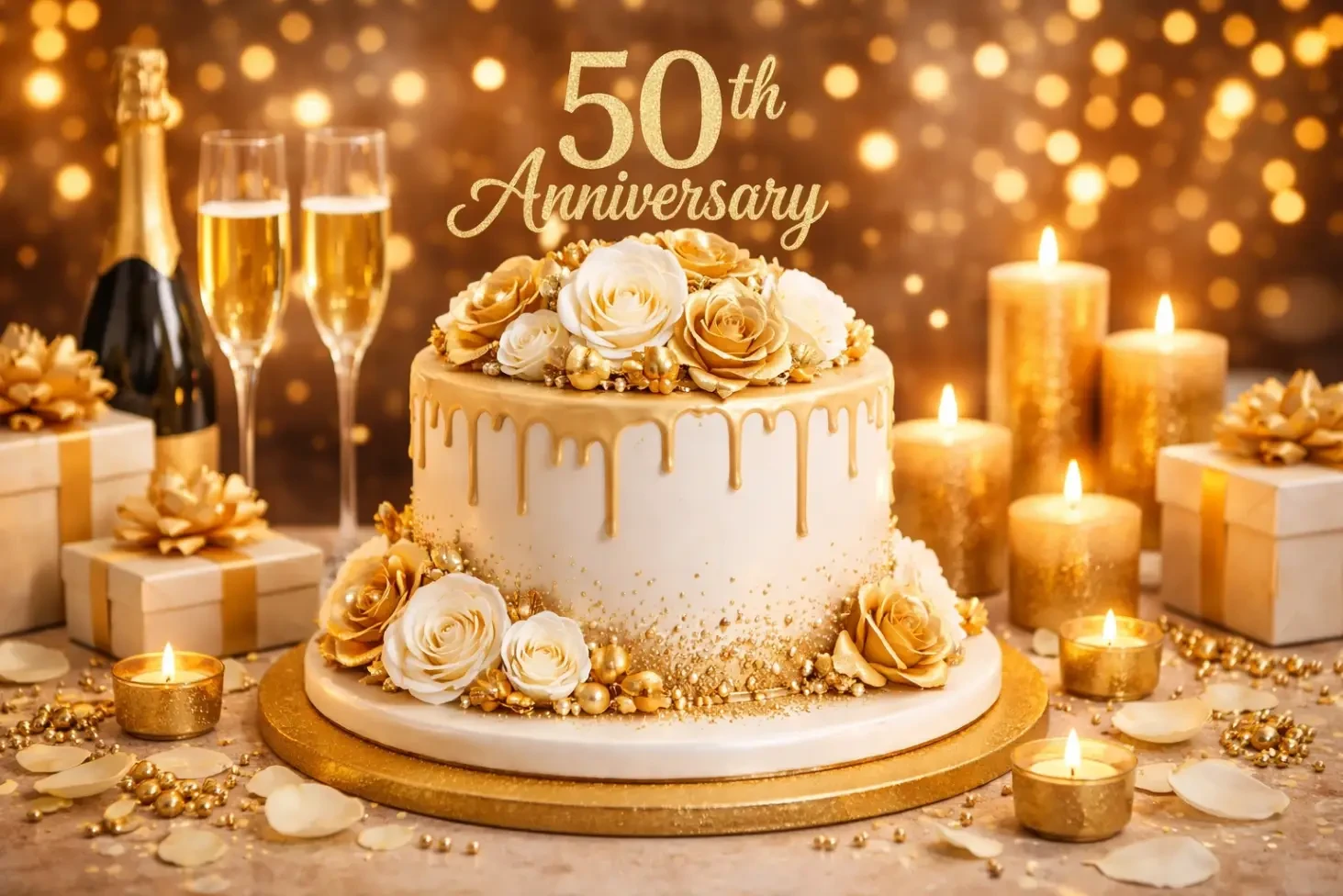 Fifty years of togetherness is truly extraordinary. The cake should reflect richness and celebration.